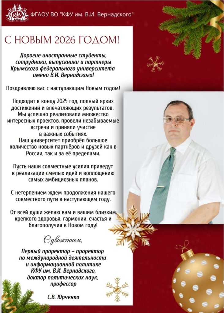 Дорогие иностранные студенты, сотрудники, выпускники и партнеры Крымского федерального университета имени В.И. Вернадского!