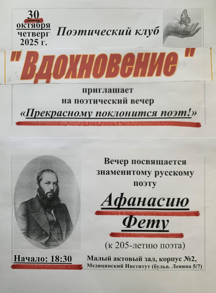 Рисунки, поделки, сборники стихов для участия в выставке необходимо принести до 10.10. 2025 г. в отдел кадров (107 каб., 2 этаж главного корпуса, И.Г. Тютюнниковой).