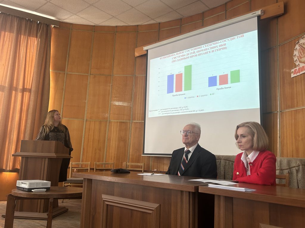 Доцент Соболева Е. М. доложила о влиянии грязелечения на иммунно-эндокринную регуляцию и структурно-функциональное состояние костно-мышечной системы при ювенильном ревматоидном артрите (клинико-экспериментальное исследование). Доцент Бабак М.Л. представила доклад, посвященный состоянию сердечно-сосудистой системы у больных бронхиальной астмой. Доцент Ревенко Н.А. выступила с докладом «Отдаленные результаты санаторно-курортного лечения детей с артериальной гипертензией». Доклад доцента Алёшиной О.К. был посвящен состоянию факторов роста, цитокинов, эндотелиальных маркеров и коррекции их изменений в условиях санатория у детей-реконвалесцентов после перенесённой новой коронавирусной инфекции. Доцент Белалова Л.Я. и Имнадзе И.Н. представили доклад «Кардиомиопатии – проблемы диагностики, тактика лечения от консервативной терапии до трансплантации сердца». Доклад к.м.н. Рыбалко О.Н. был посвящен прогностическому значению гемодинамических изменений у детей с когнитивными нарушениями. Доцент Сидоров А.Г. выступил с докладом «Выхаживание недоношенных новорожденных детей путем совершенствования организации перинатальной помощи и технологий интенсивной терапии в Республике Крым». Аспирант Юсупов Э.Э. доложил об эндотелиальной дисфункции в контексте патогенеза бронхиальной астмы.