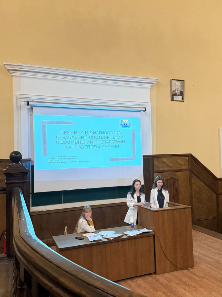 В конференции приняли участие 13 студентов, представивших 8 научных докладов по актуальным вопросам токсикологии, судебно-химической экспертизы и клинической фармакологии. Очный формат способствовал живой научной дискуссии и активному обмену мнениями между докладчиками, преподавателями и членами жюри. В выступлениях рассматривались вопросы антидотной терапии, диагностики лекарственных отравлений, судебно-химического анализа психотропных веществ и особенностей постмортальной фармакокинетики. Особый интерес у слушателей вызвали доклады о тактических подходах к лечению отравлений угарным газом, о ятрогенных осложнениях с летальным исходом. Часть выступлений носила преимущественно теоретический характер, тогда как другие были ориентированы на практику: при подготовке к ним студенты знакомились с материалами судебно-медицинских экспертиз и работой профильных учреждений.