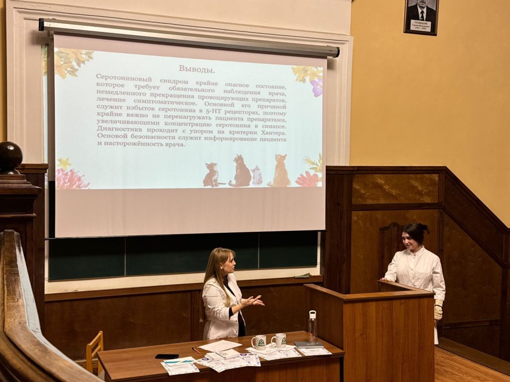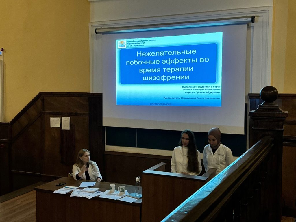 6 ноября 2025 года состоялась студенческая научно-практическая конференция «Нежелательные лекарственные реакции в психофармакотерапии», организованная совместно кафедрами базисной и клинической .фармакологии и психиатрии, наркологии, психотерапии с курсом общей и медицинской психологии.