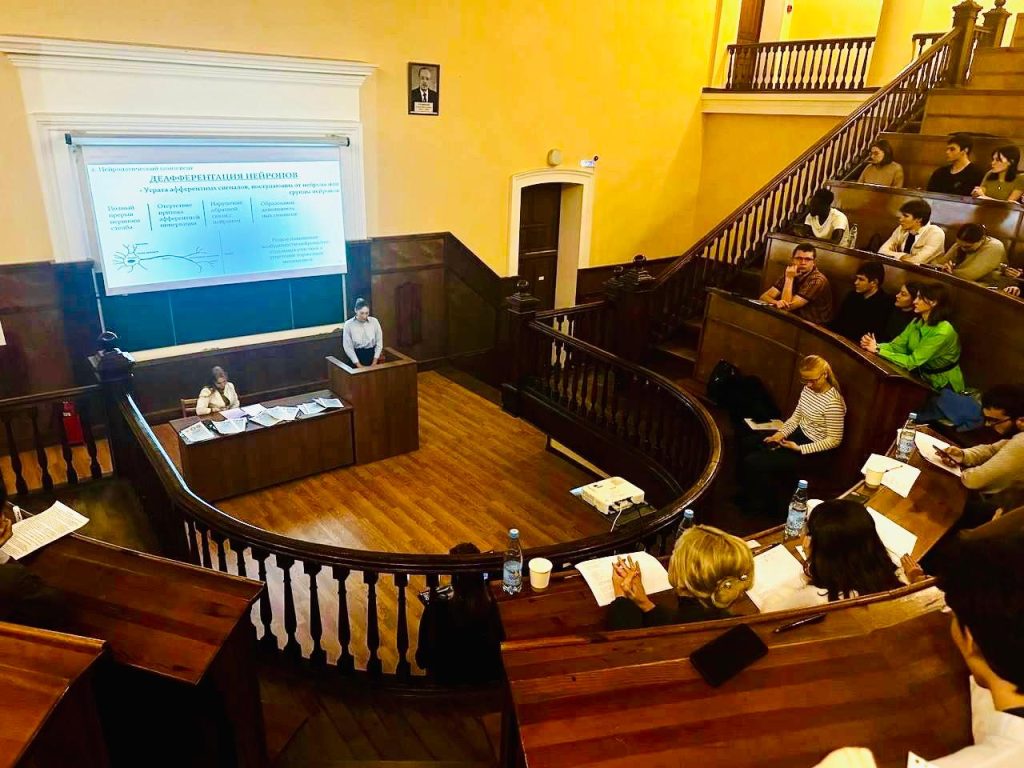 В ходе конференции было представлено 8 студенческих докладов, посвященных современным направлениям применения моноклональных антител в терапии неврологических заболеваний. Заведующая кафедрой нервных болезней и нейрохирургии, профессор Л.Л. Корсунская, выступившая председателем жюри, в своем заключительном слове подробно проанализировала сильные стороны представленных работ, дала рекомендации и обозначила направления, в которых молодым исследователям следует развивать свои научные проекты в дальнейшем.