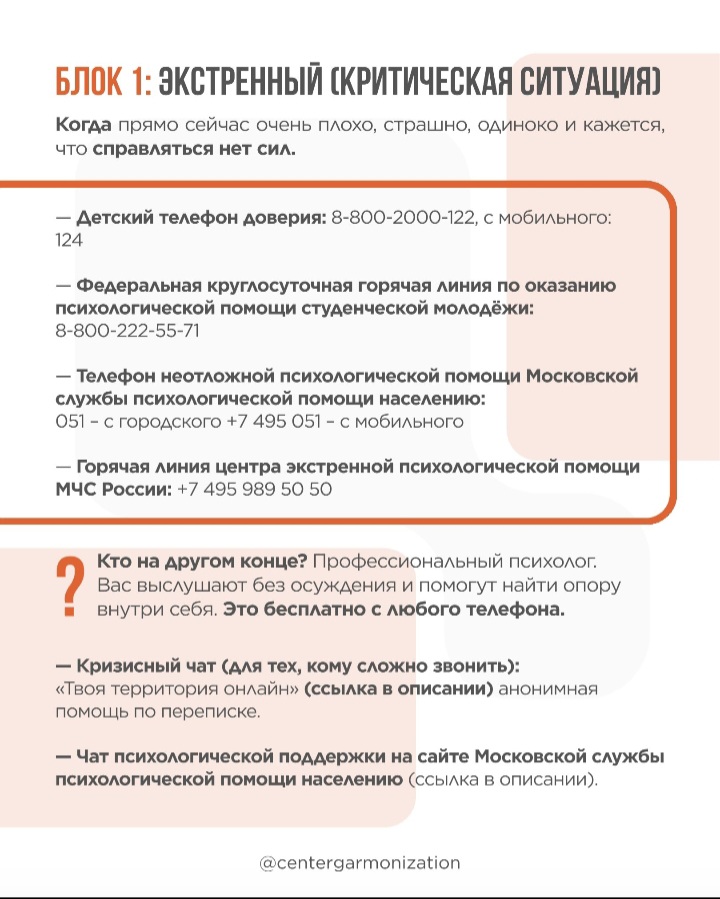 Там работают профессиональные психологи. Тебя выслушают без осуждения и помогут найти опору.