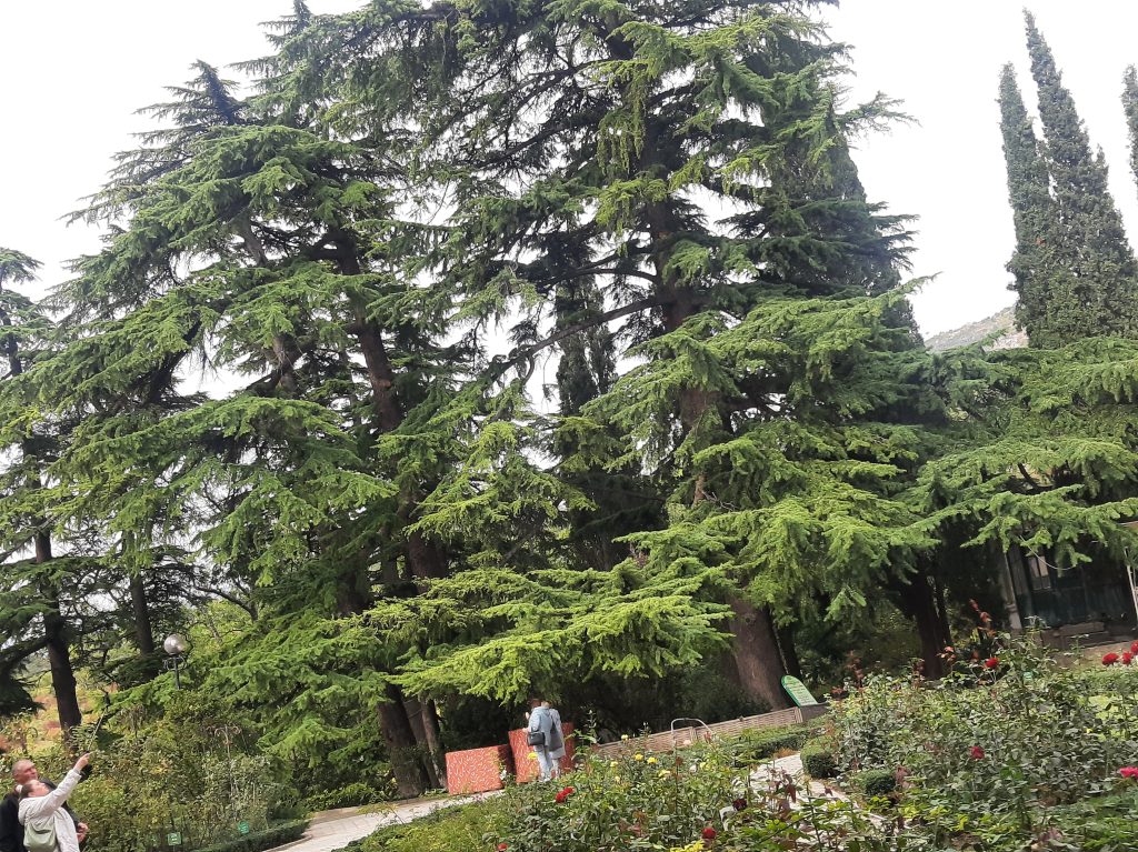 В верхнем парке, который уже не так пышен, как в летний период, полюбовались огромным дендрарием с тысячами видов деревьев и кустарников со всего мира, самому старому дереву 1000 лет, полюбовались фисташкой Чехова А.П. Прогулялись по аллеям, любуясь скульптурами. Затем спустились в нижний парк, наслаждались видами чудесных деревьев: кедрами, можжевельниками, секвойями, бамбуковой и банановой рощицами. Прошлись по пальмовой аллее. Вдыхая волшебный запах изумительных ароматов. Посетили парк Динозавров, заглянули в японский дворик.
