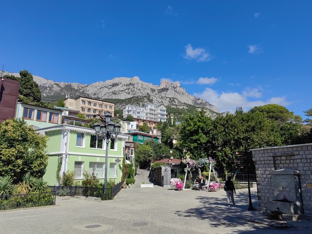 Дорога и погода нас порадовали: из затянутого тучами Симферополя мы погрузились в лучезарные долины Южного Берега Крыма и порадовались ландшафтам Крымских гор, простора Черного моря и ласковой природы не смотря на порывы ветра, поскольку солнце согревало и поднимало настроение всем принявшим участие в путешествии. Уютный и маленький городок — Алупка встретила нас величественными отрогами горы Ай-Петри, памятником герою Советского Союза Амет-Хану Султану и причудливыми украшениями — стилизованными картинами на стенах некоторых домов. Кроны итальянских пиний возвышались на нашем пути, водопады и лестницы ландшафтного английского парка радовали нас своей естественной и органичной красотой.