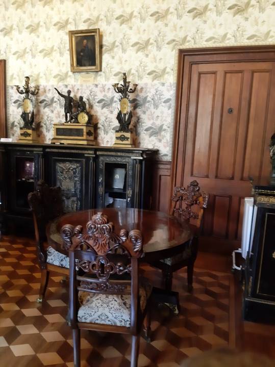 Экскурсия началась у главных ворот замка-дворца графа М.С. Воронцова. Затем мы смогли войти в этот уникальный памятник архитектуры. Напротив дворца в лучезарном голубом небе сверкали отроги горы Ай-Петри! Интерьеры дворца сложно описать словами, поэтому просто перечислим комнаты — кабинет графа М.С. Воронцова, портрет графа на одной из стен, уникальная китайская гостиная, протрет графини Е.К. Воронцовой, вид на сад и море из гостиной, персидский уголок в парадном кабинете, голубая гостиная, оранжерея зимнего сада.